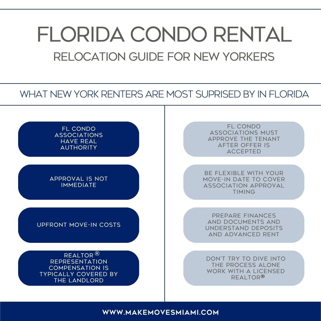 Relocating from New York to Florida to rent a condominium involves more structure, oversight, and preparation than many renters anticipate. The rewards are countless, but preparation ensures a smooth approval process. Here is a Relocation Guide specifically for New Yorkers on What to Expect and How to Prepare Before Applying.