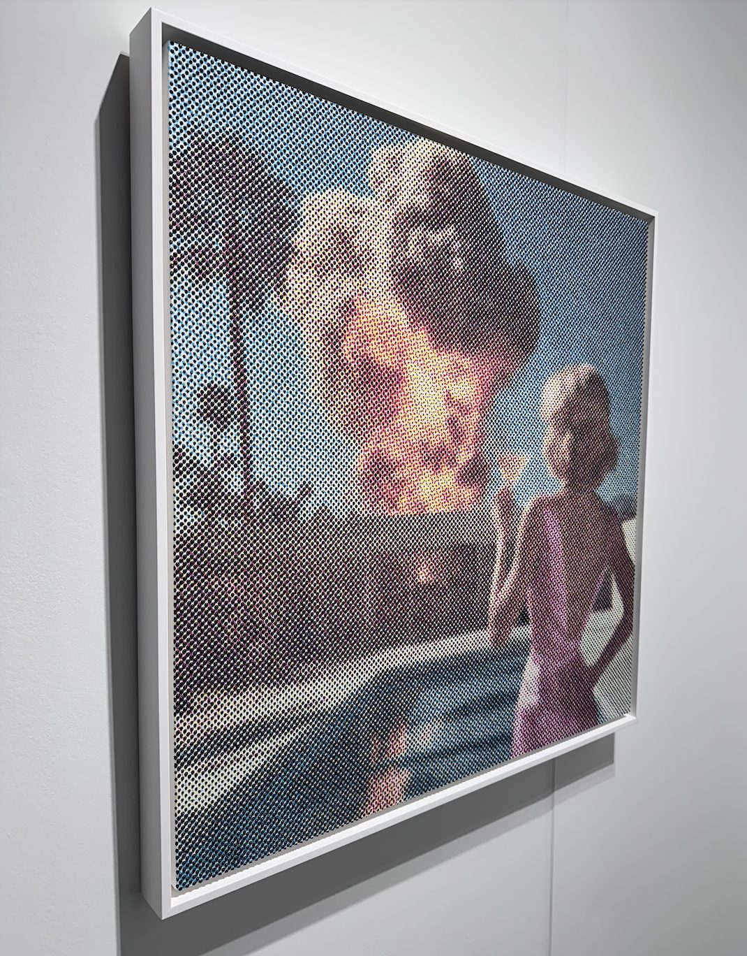 By early afternoon, the crowd thinned slightly, and the experience became more personal. A final lap through the booths revealed pieces that lingered in memory – both bold and conceptual. The series “It’s Probably Fine” by artist Maggie Hall resonated the most personally. The piece I learned is created with a technique using hand-placed dot sequences, exploring themes of maintaining composure amidst chaos.
