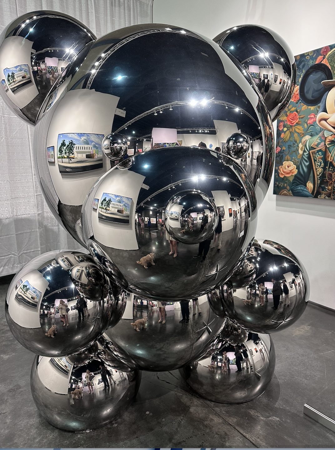 Inside, the atmosphere buzzed with a mix of exploration and acquisition. Large-scale contemporary paintings hung beside experimental sculpture and polished large scale sculptures. Conversations floated between dealers, collectors, and visitors, including my puppy Lily who received lots of pets and positive attention. The fair’s appeal lies in its range: emerging artists shared space with established names, making it as much about discovery as prestige. Following Art Week/Art Basel in December, this show provided elegance without the usual intensity of art exhibits in South Florida.